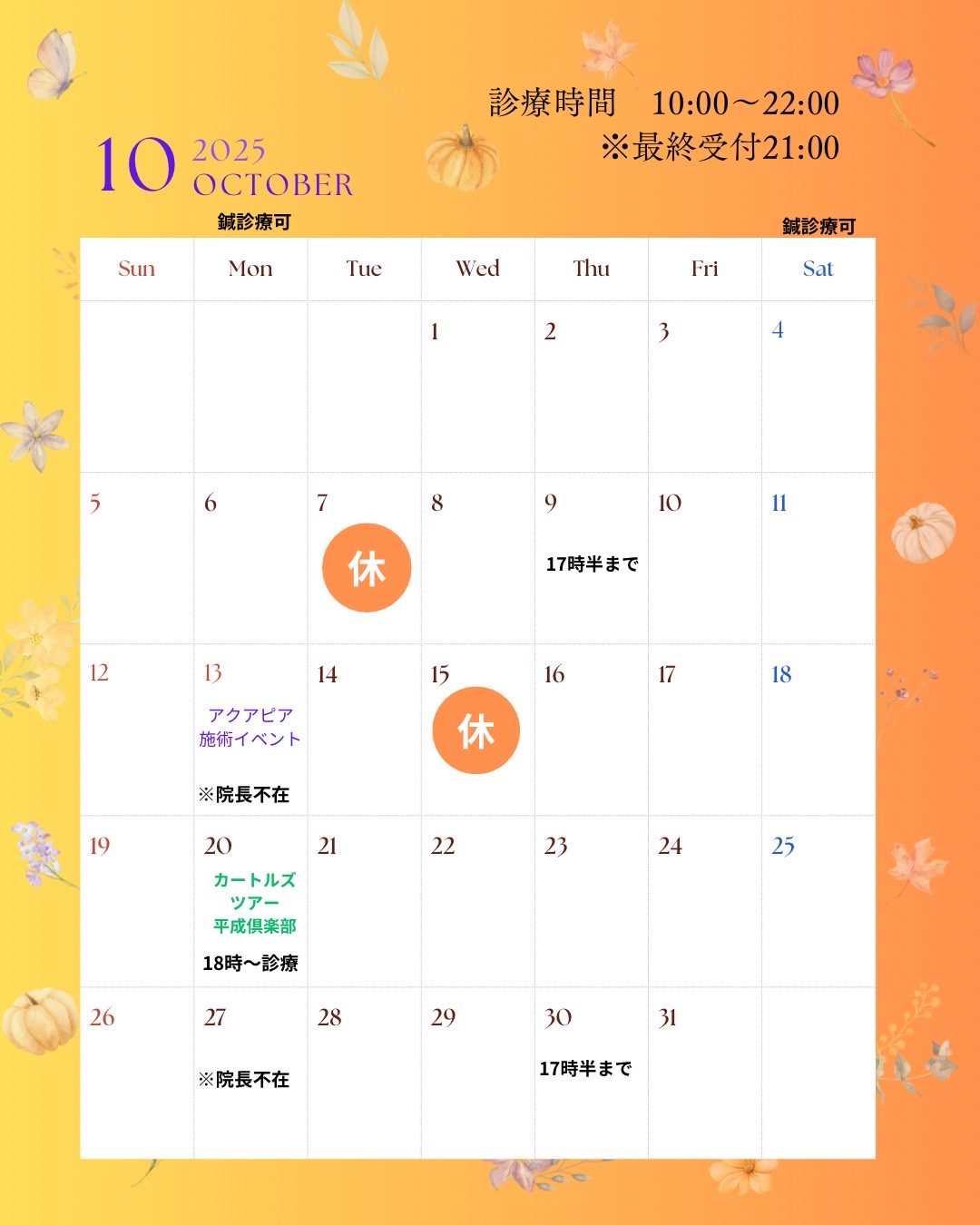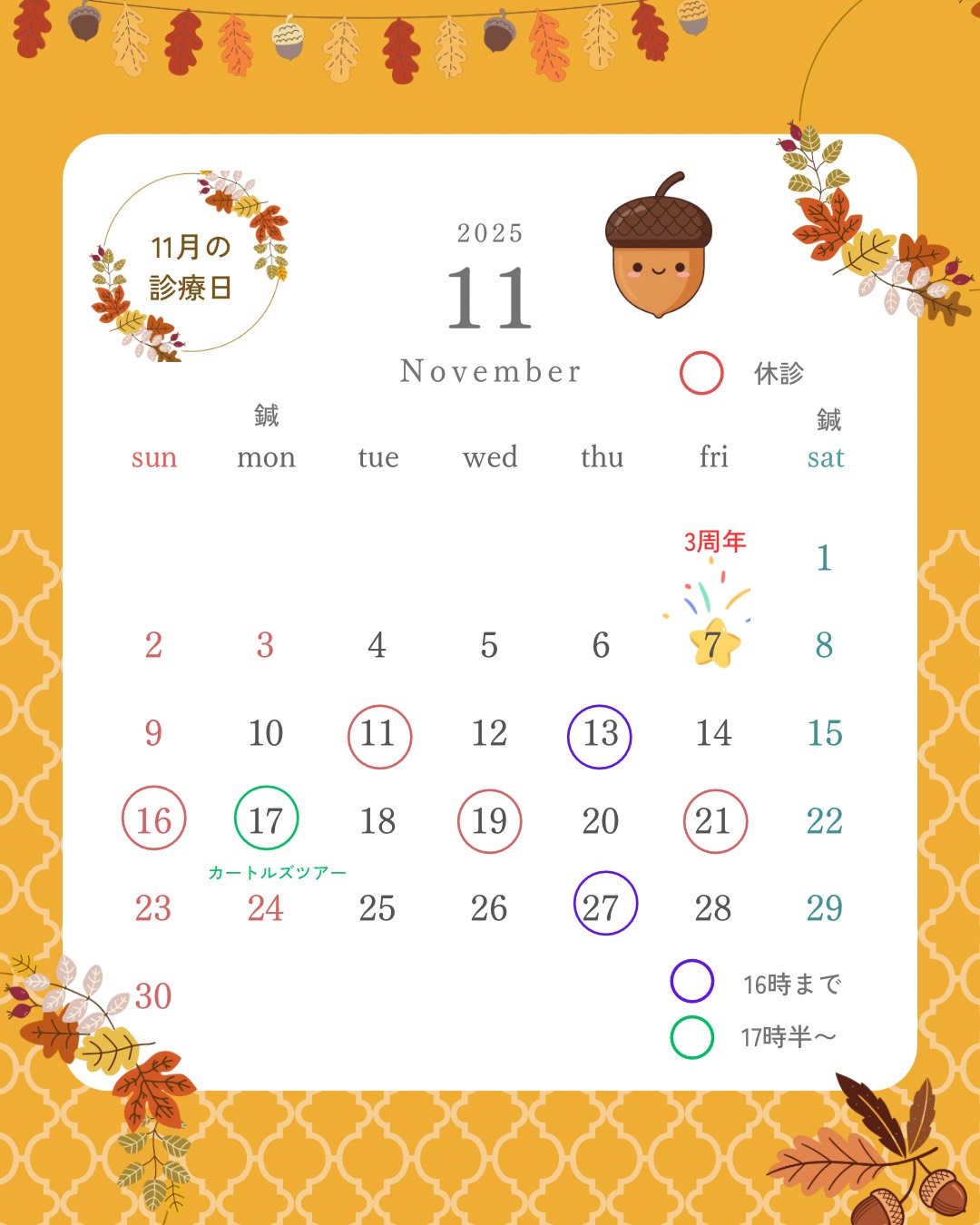 11月の診療日を更新しました。2025/06/22